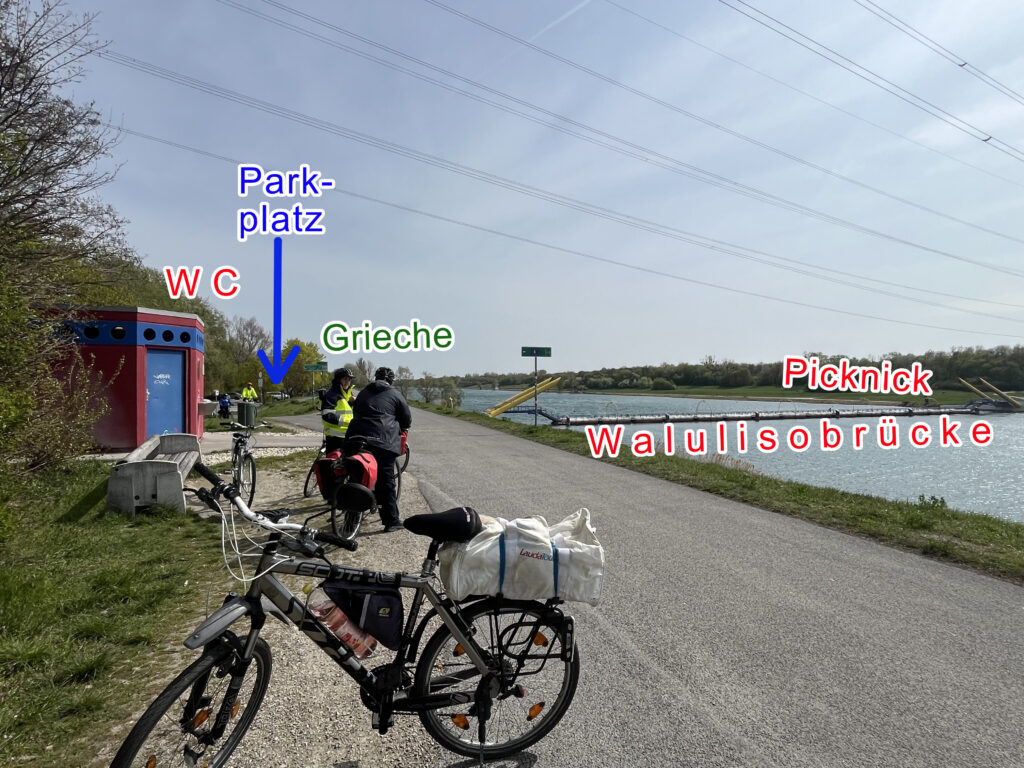 13:00 U6 Station Neue Donau – beim Ausgang Parkplatz bei den Citybikes (für alle Jahreskartenbesitzer echt preisgünstig!)