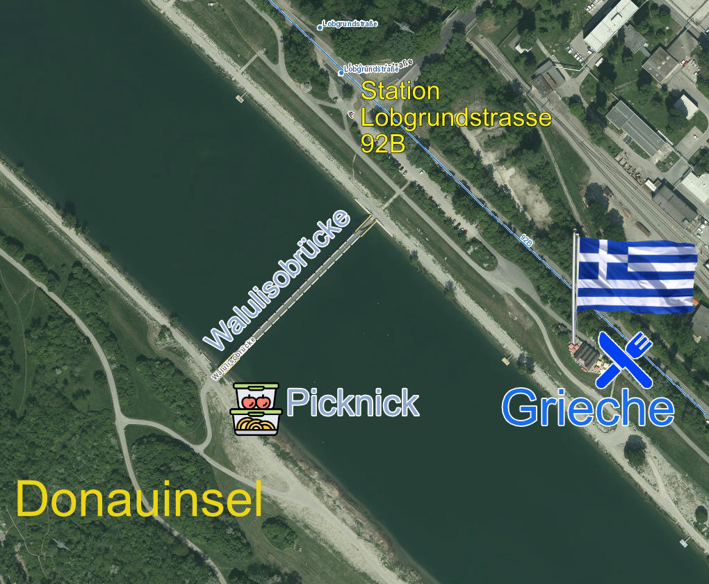 14:30 Uhr Walulisobrücke – Treffpunkt auf der Insel für das Picknick oder wir gehen zum Griechen rüber…