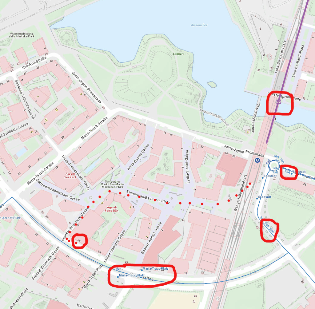 Wir treffen uns jeden Mittwoch hier in der Seestadt.